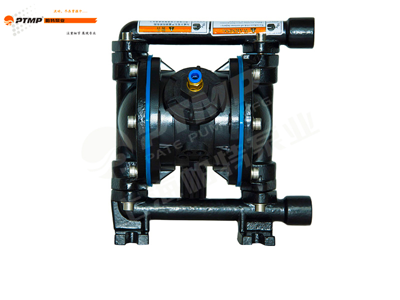 一,連接壓縮空氣后,氣閥控制壓縮空氣推動膜片向友移動,同時膜片會擠壓右膜腔室中的介質(zhì)從而將介質(zhì)排除泵腔。膜片不僅起輸送介質(zhì)的作用,同時在泵腔中起隔離壓縮空氣和介質(zhì)。當一個膜片被壓縮空氣推向遠離中間體時,與此同時通過連桿鏈接的另外一個膜片移向中間體時,與此同時通過連桿鏈接的另外一個膜片移向中間體,其中處于高壓的連桿其作用是連接位于兩個膜腔室中的膜片。當膜片2移向中間體時,膜片后面的高壓空氣通過閥門的換向通過消音器被迫排放到外界。當膜片2移向中間氣閥時,泵入口產(chǎn)生真空并通過大氣壓力將介質(zhì)壓入泵的進口中。此時蹦的進口閥球會被抬高而離開閥座,保證介質(zhì)很輕松的通過進口管路而充入泵腔中。